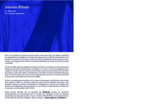 Inscription : https://www.billetweb.fr/le-diaconat-un-etat-des-questions